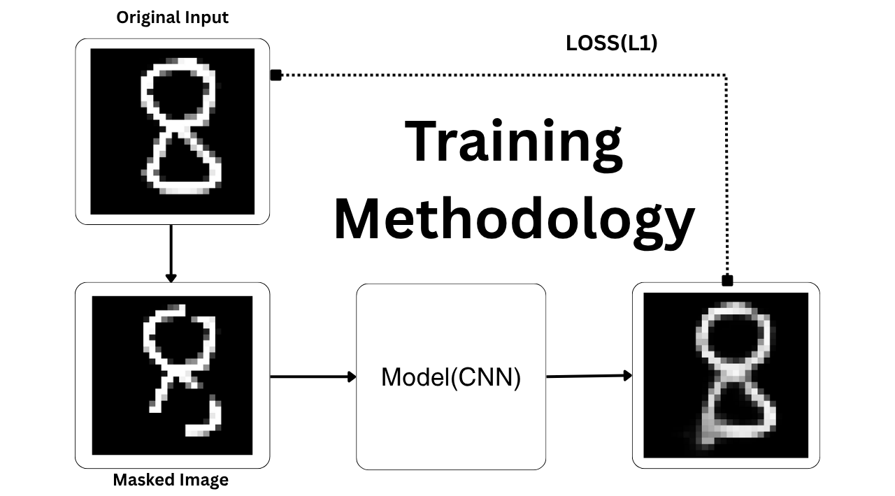 - Training algorithm with 10 epochs - In each epoch, for every image in MNIST - Generate a random mask